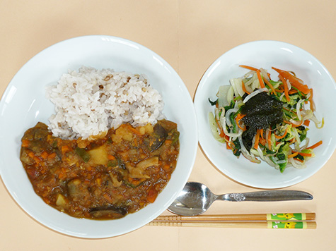 今日のメニューも野菜がたっぷりでしたが、やさしい味付けでとても食べやすかったです。野菜を食べて体を強くしたい子ども達はお替わりお替わりとよく食べてました。