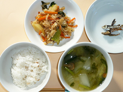 野菜にゅうめんとじゃこ・蓮根のごはんとスィートポテト